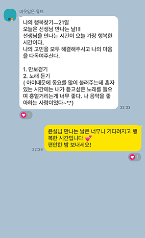 즐거운 일이 생기면 강사님이랑 이야기 하고 싶어요